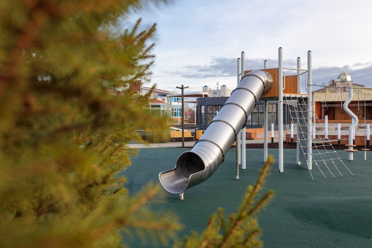 Проект был реализован в два этапа. В 2022 году на участке установили подпорную стену, обустроили детскую площадку, зону воркаута, баскетбольную площадку и место для торговли. А второй этап завершился в 2025 году. Там добавили скейт-площадку, памп-трек, велодорожку и пешеходные маршруты. Территорию озеленили и установили качественное освещение, что позволяет посещать парк в любое время суток.
