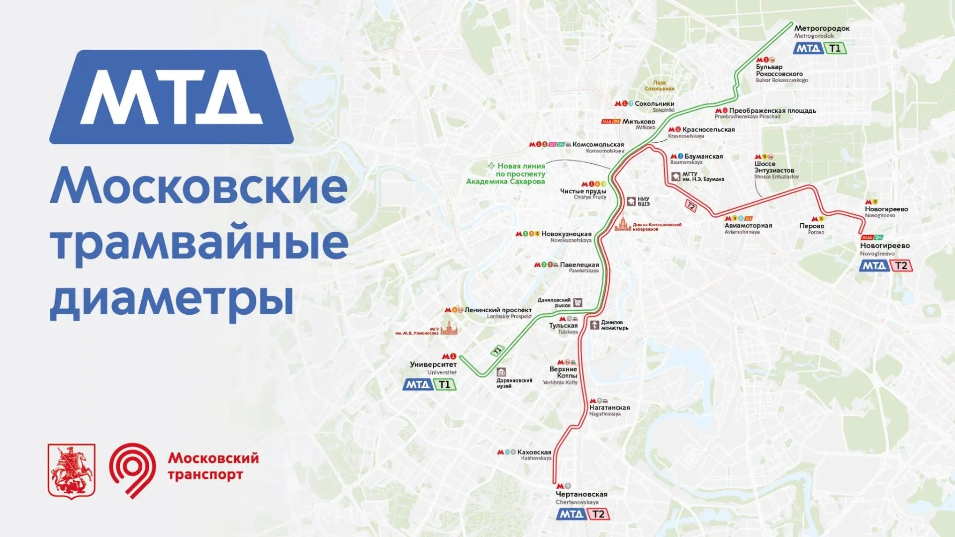 На Т2 расположено 79 остановок, а маршрут проходит через МГТУ им. Н. Э. Баумана, Московский энергетический институт, Даниловскую мануфактуру, а также через другие социальные и образовательные учреждения. Т2 связал 31 станцию метро, МЦК, МЦД и железной дороги, а также 4 центральных железнодорожных вокзала.