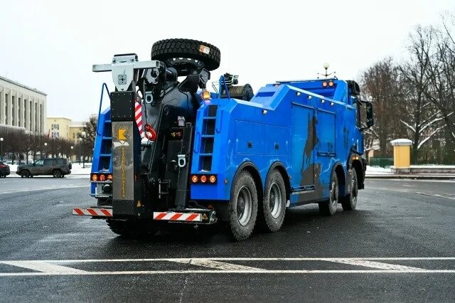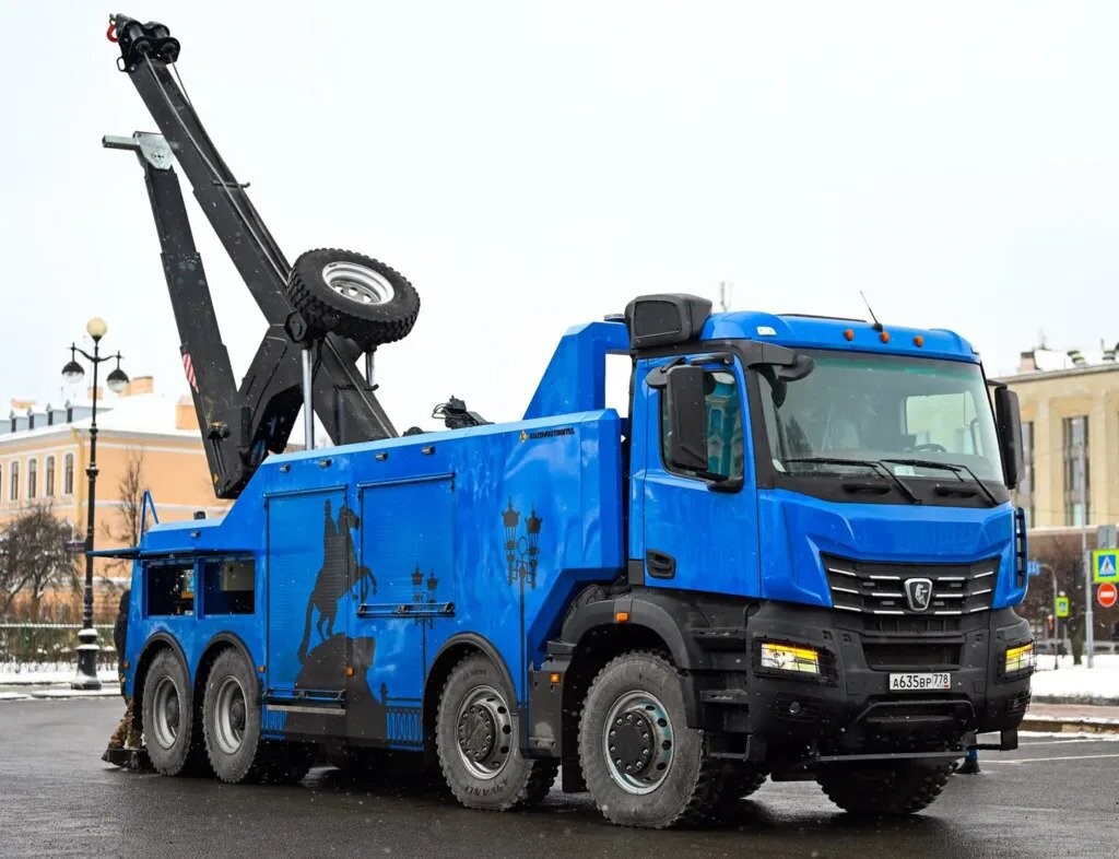 В итоге получилась российская машина на отечественном шасси, которая может выполнять не только стандартную буксировку, но и сложные аварийные операции с самыми тяжелыми транспортными средствами: подъём опрокинутых грузовиков, извлечение техники из кювета, а также эвакуацию с ограниченным доступом.