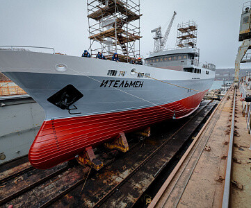 На Восточной верфи (управляющая компания — Амурский судостроительный завод ОСК) состоялась торжественная церемония спуска на воду краболовного судна «Ительмен» проекта 03141. Краболов построен в рамках реализации программы обновления рыбопромыслового флота России и предназначен для добычи и транспортировки краба в живом и переработанном виде.