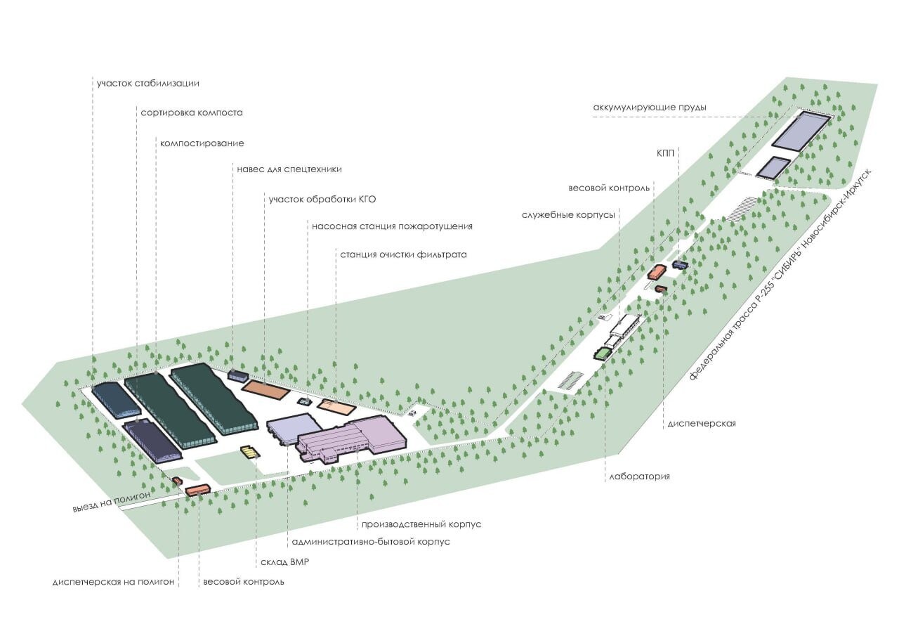 После запуска на предприятии будет производиться сортировка твердых коммунальных отходов и крупногабаритного мусора, переработка органической фракции методом компостирования, а также подготовка вторичных материальных ресурсов для дальнейшей переработки. Вторым этапом планируется создание экотехнопарка, который должен объединить местных производителей. В настоящий момент совместно с администрацией Иркутской области разрабатываются меры поддержки местных предпринимателей.