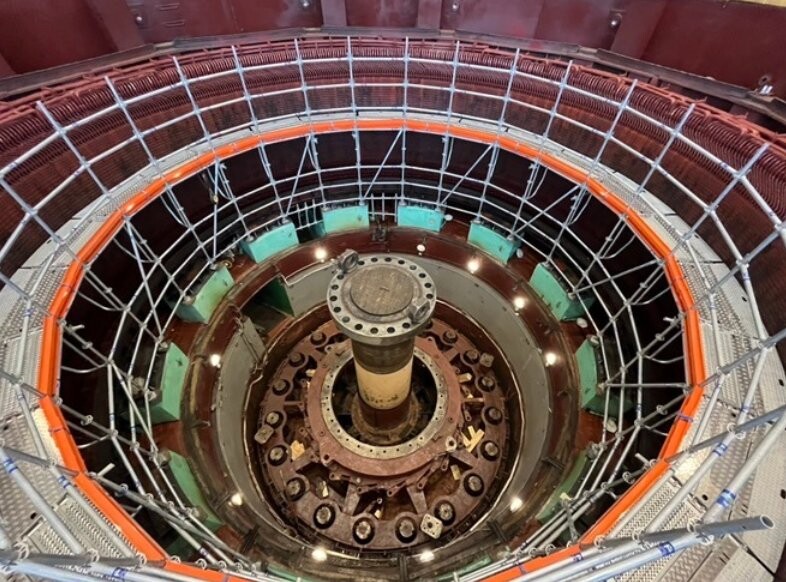 В основе инженерного решения, разработанного с нуля, — круговые леса. Уникальность комплекта заключается в создании рабочего пространства на высоте вдоль всей окружности статора генератора, выполненного в форме идеального круга диаметром 11 метров — это единая конструкция из легкосплавных настилов. Представленные на рынке типовые решения не позволяли создать необходимую форму лесов. Поэтому при ремонте гидрогенератора такую конструкцию пришлось бы частично разбирать для доступа к нужной части оборудования. И каждый раз это требовало бы больше времени, приходилось бы сталкиваться с различными рисками и внештатными ситуациями.