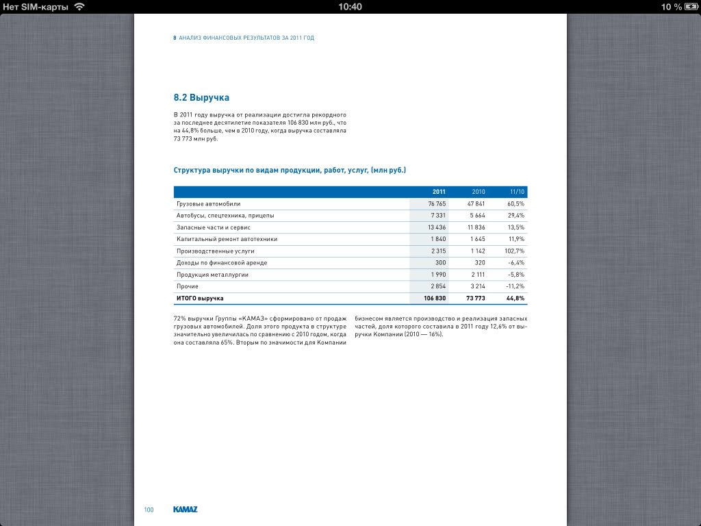 По итогам 2012 года ОАО "КАМАЗ" увеличило чистую прибыль по РСБУ в 73 раза - до 4,897 млрд рублей по сравнению с 66,668 млн рублей за 2011 год, говорится в отчете компании.
