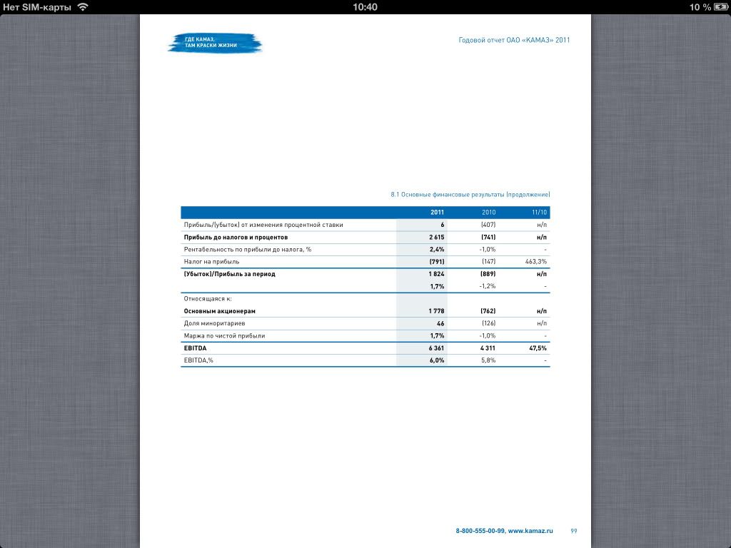 Прибыль до налогообложения составила 6,569 млрд рублей, что в 38 раз больше, чем в 2011 году (169,636 млн рублей).