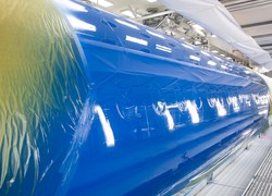 Сначала самолет красят в основной цвет, у ЮТэйра он белоснежный. На новый самолет было потрачено около 100 кг краски , площадь окрашиваемой поверхности составила 550 метров квадратных!