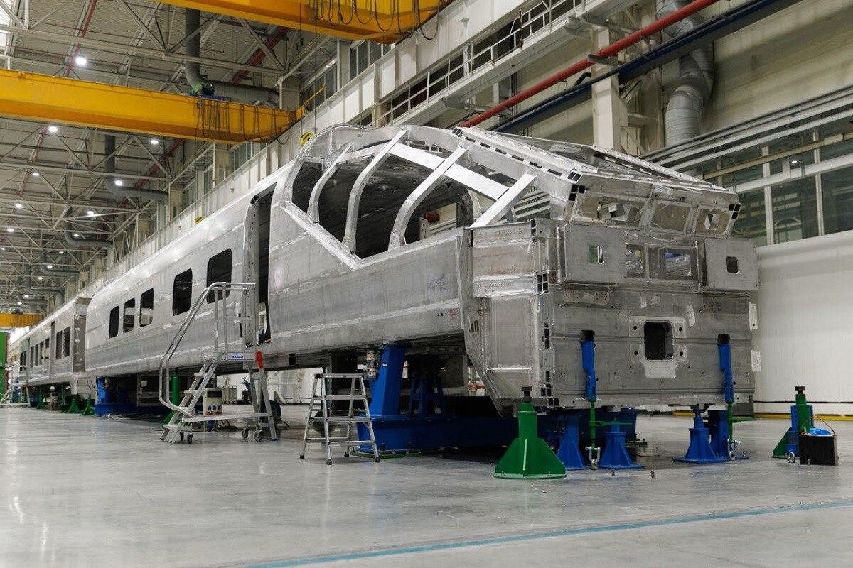 © t.me На заводе «Уральские локомотивы» (входит в Группу Синара) завершили сварку кузовов первых вагонов для отечественного высокоскоростного электропоезда. Речь идёт о головном моторном и втором немоторном вагонах — именно их будут использовать в тестовых испытаниях.
