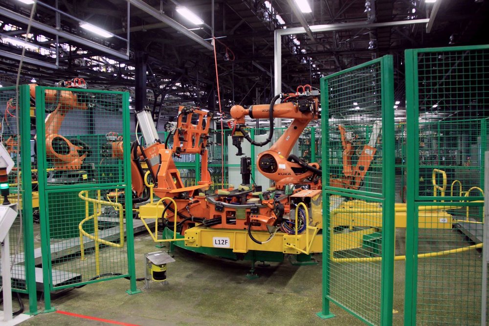 И только в конце линии стоят четыре робота Fanuc, «собирающие» кузов из крупных заготовок. Точнее, роботы на готовом каркасе проваривают точки по порогам, аркам, крыше и передку.