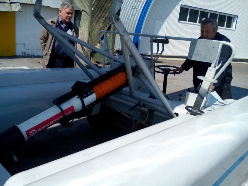 Гидроцилиндр ГЦ10×460Хр «Энерпром» с автоматическим механическим стопорением храповым механизмом применен, как цилиндр гидроподъемника лестницы трапа самоходного пассажирского авиационного СПТ-114 в ОАО «МЕЖДУНАРОДНЫЙ АЭРОПОРТ ИРКУТСК».
