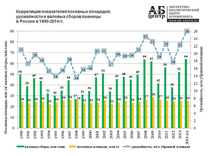 Вице-президент Российского зернового союза Александр Корбут заявил, что в этом году собрать могут даже больше, чем предполагал министр, — 111 млн тонн зерновых (65 млн тонн пшеницы).