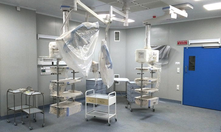 - Корпус площадью 12,9 тыс. кв.м рассчитан на 26 коек круглосуточного стационара и 50 коек дневного стационара.