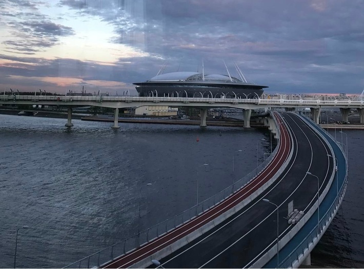 Строительство мостового перехода длиной 940 метров началось весной прошлого года. Новый мост обеспечил удобную связь между двумя парками (Приморским парком Победы и парком 300-летия Санкт-Петербурга), а также улучшил доступ к спортивным объектам на Крестовском и Бычьем островах.