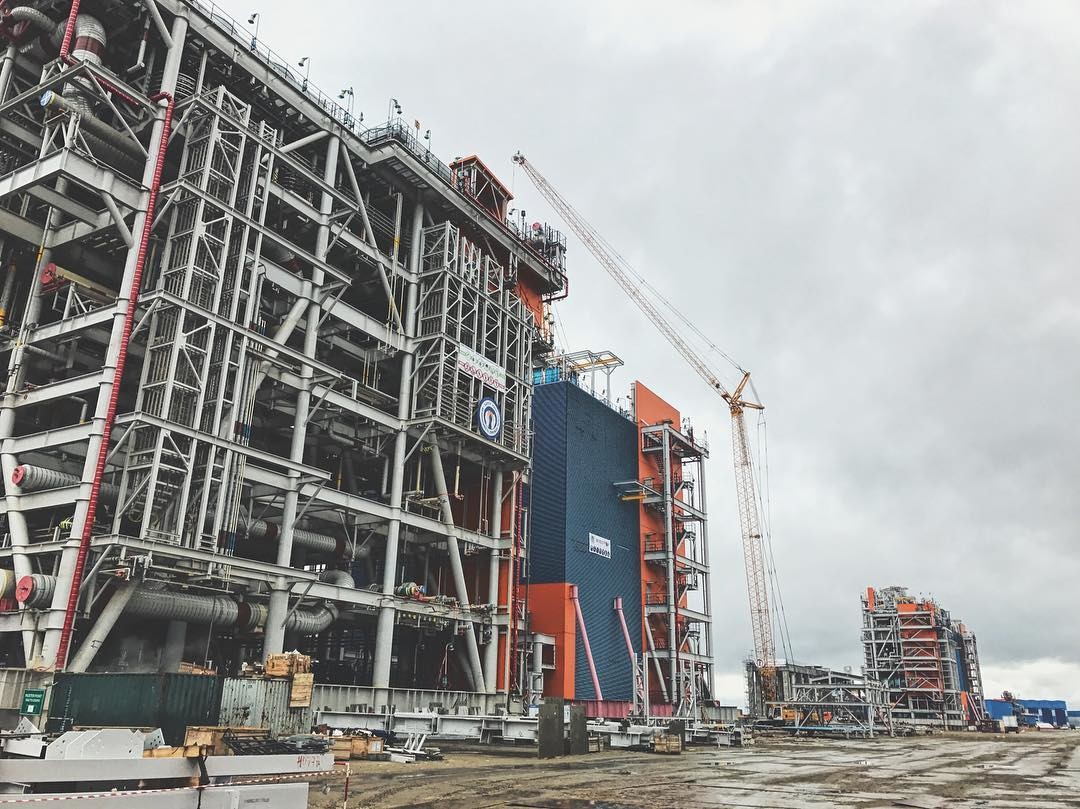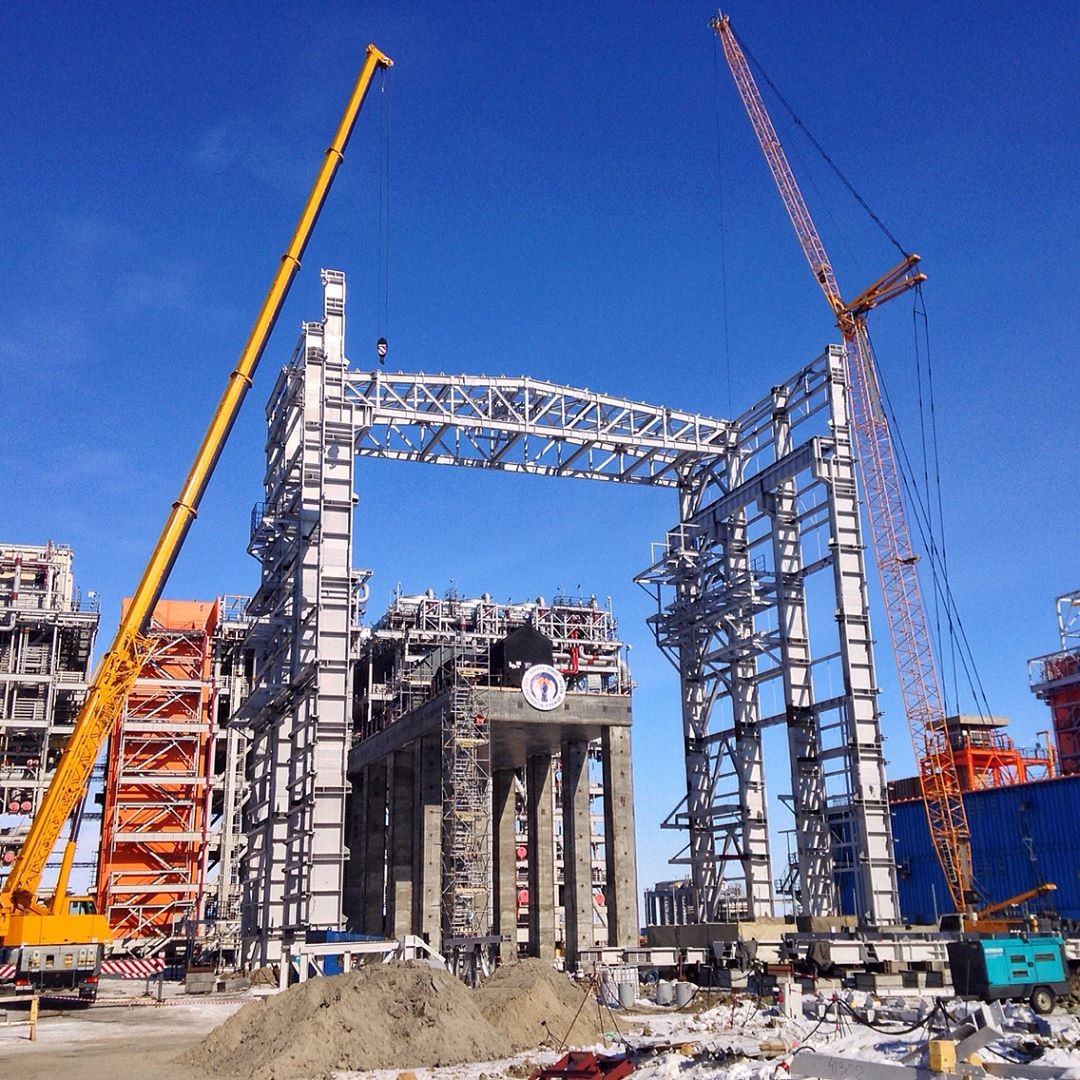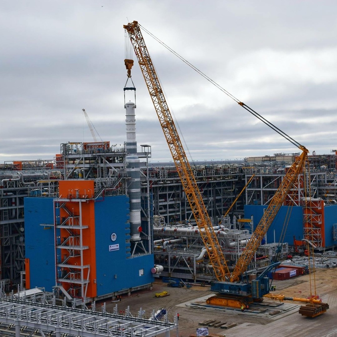 В последние дни августа успешно прошла установка криогенного теплообменника, общий вес которого составляет 357 тонн. Его установили на технологической линии № 2.