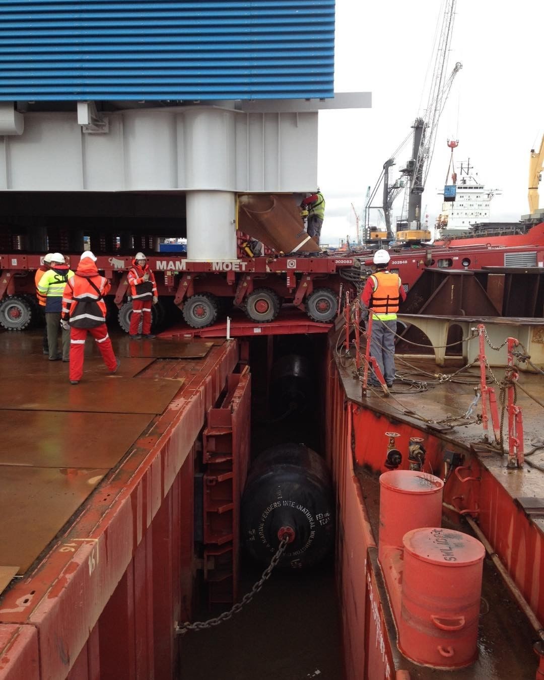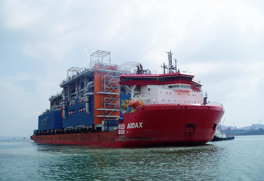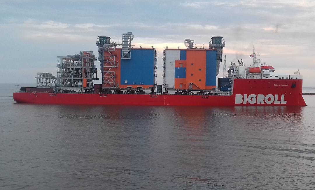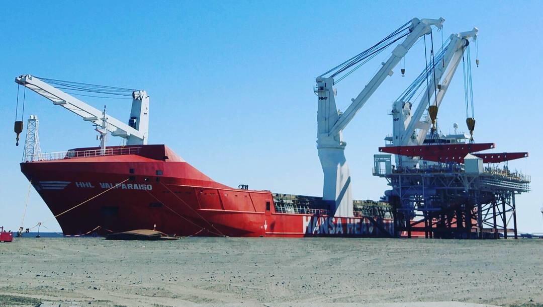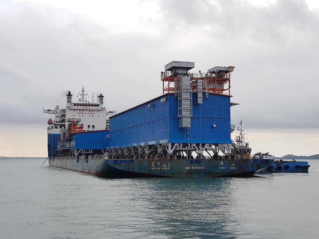 Судно с модулямии и 32мя ж/д контейнерами для второй технологической линии отправляется в путь до строительной площадки завода