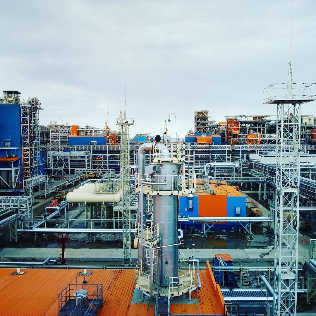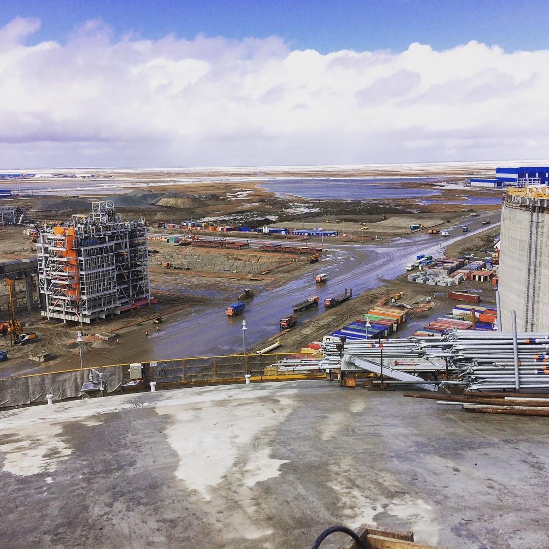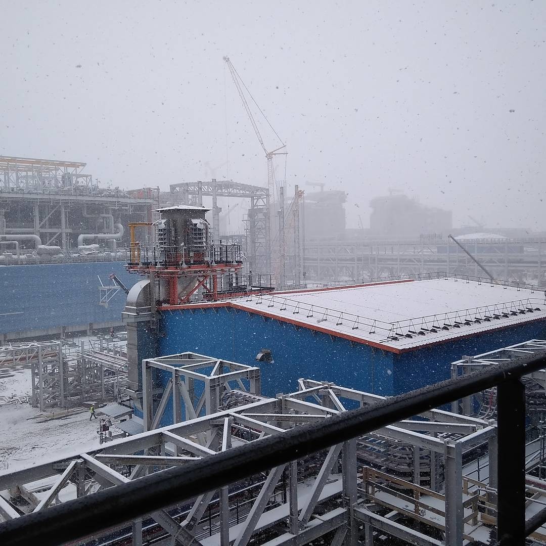 июнь 2017 Первые дни лета, на крыше электростанции. Предназначена для выработки электроэнергии и тепла для собственных нужд СПГ-завода. Работает на подготовленном топливном газе с месторождения.