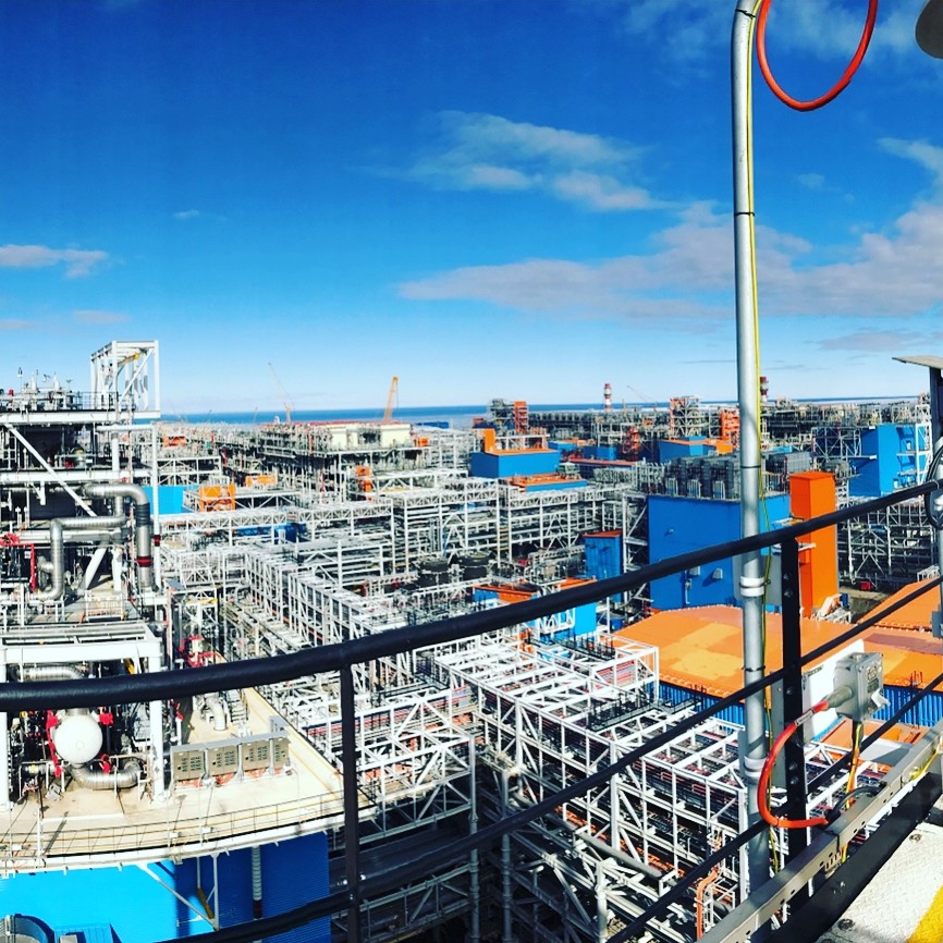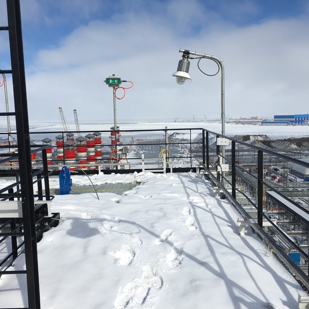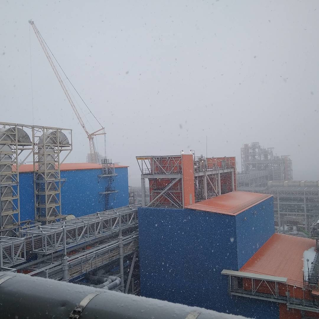 июнь 2017 Первые дни лета, на крыше электростанции. Предназначена для выработки электроэнергии и тепла для собственных нужд СПГ-завода. Работает на подготовленном топливном газе с месторождения.