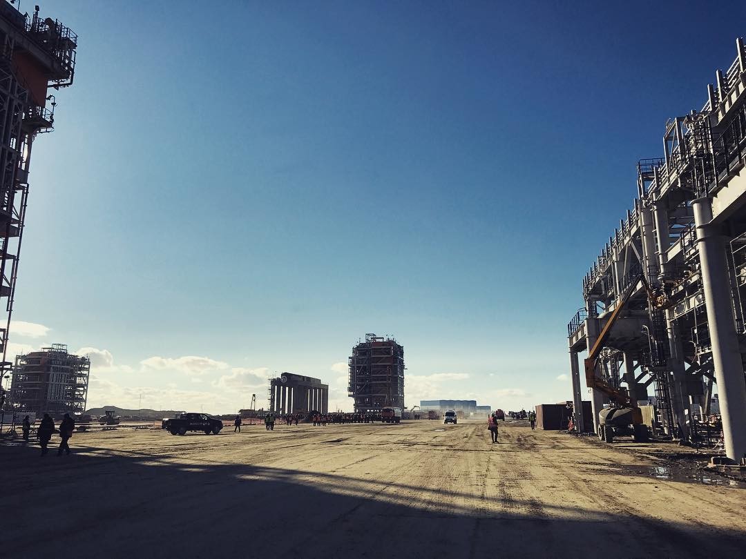 август 2017 Монтаж платформы весом 560 тонны на последний 4ый резервуар СПГ