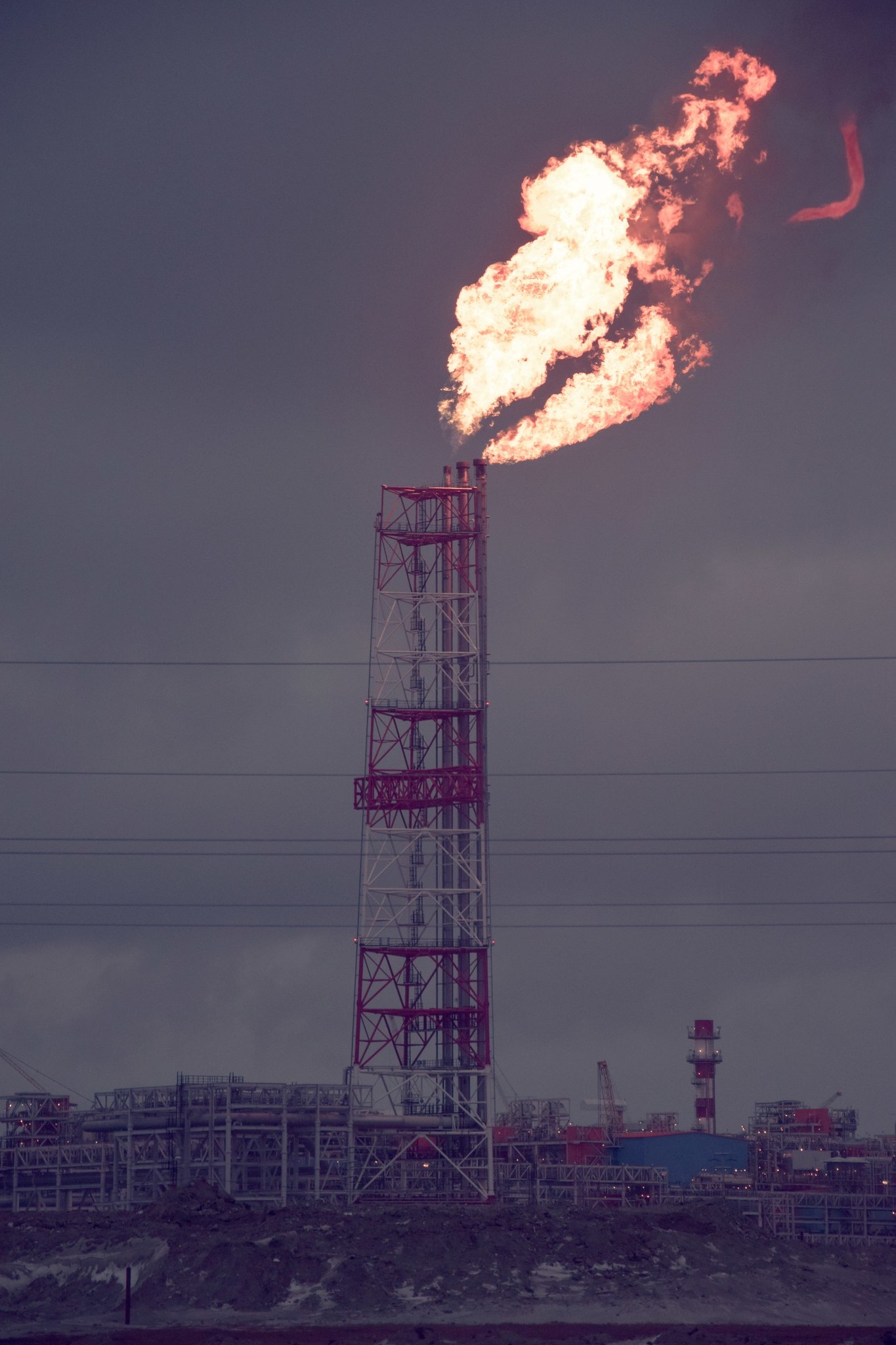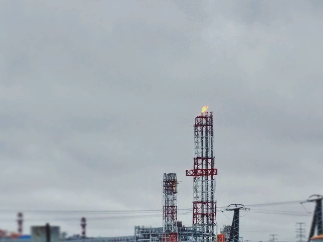 ноябрь, главная факельная установка, факел в порту, танкер, завод