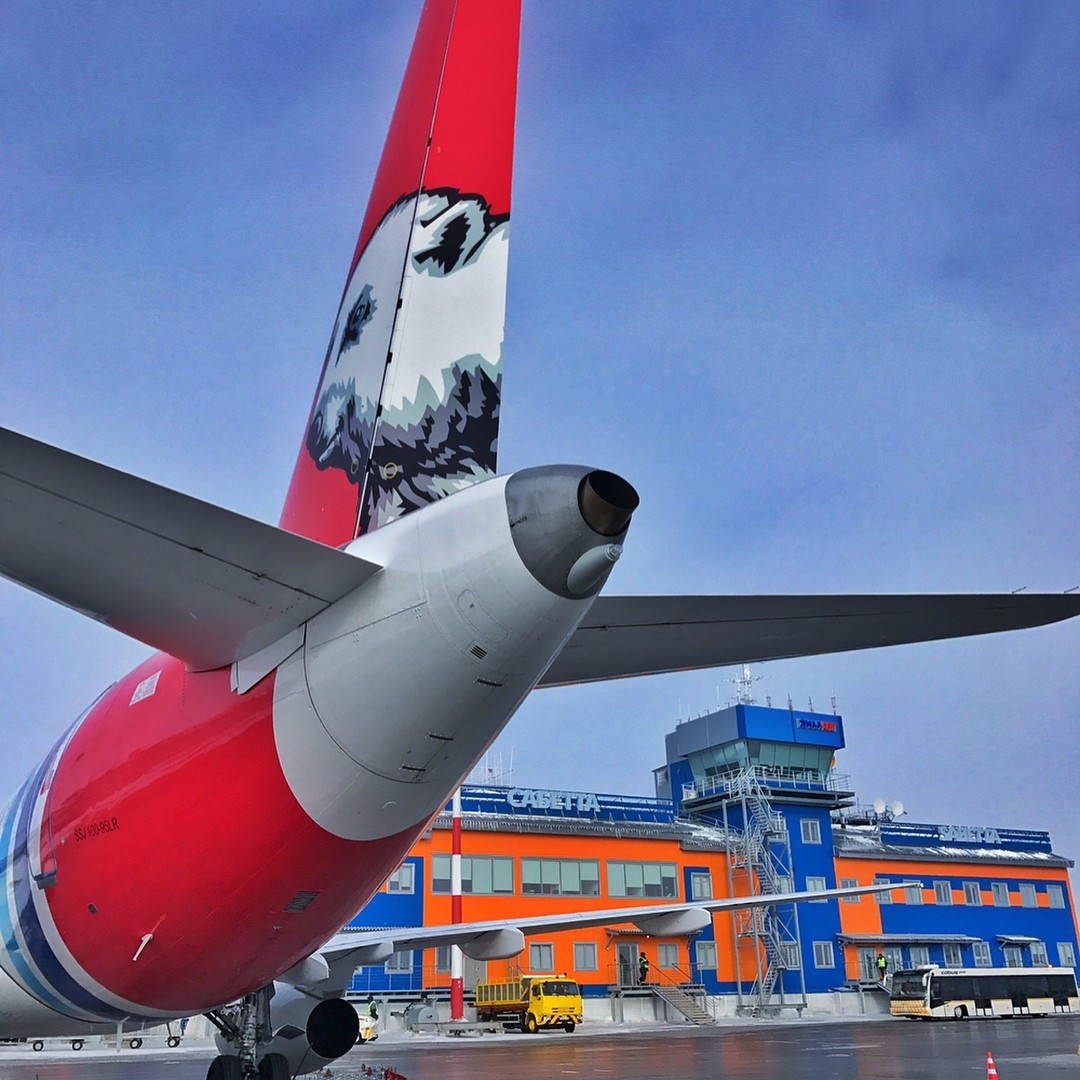 Сухой Суперджет 100 авиакомпании Ямал на пероне аэропорта Сабетта
