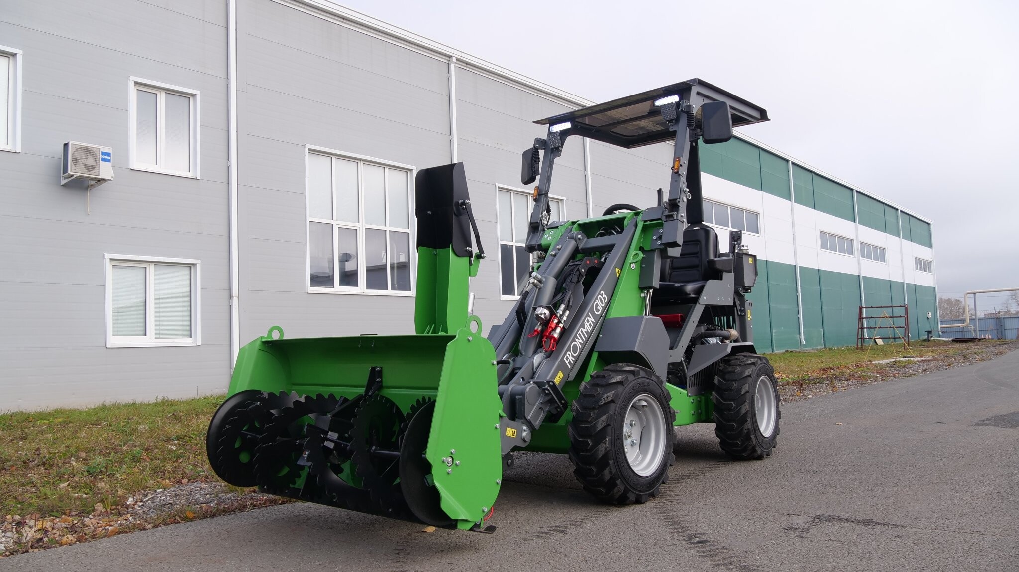 Погрузчик FRONTMEN © front-men.ru Погрузчик фронтальный FRONTMEN GI03 — это российский профессиональный шарнирно-сочлененный всесезонный погрузчик с полным приводом (4 гидромотора), обеспечивающий высокую проходимость благодаря адаптивной нагрузочной системе колес, компактностью конструкции для работы в ограниченных пространствах, увеличенной высотой подъема груза посредством телескопической стрелы, универсальной монтажной плитой для установки свыше 30 различных типов дополнительного оборудования, корпусом и основными узлами из легированной стали марки 09Г2С, эксплуатационной надежностью 24/7 и средним сроком службы около 10 лет с гарантией до 36 месяцев.