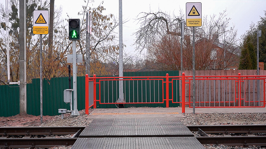 © company.rzd.ru В поселках Знаменск и Рощино открыли два новых пешеходных перехода через железнодорожные пути. Оба объекта оборудованы резинокордовыми покрытиями, освещением, световыми и звуковыми оповестительными сигнализациями, а также направляющими ограждениями для пешеходов.