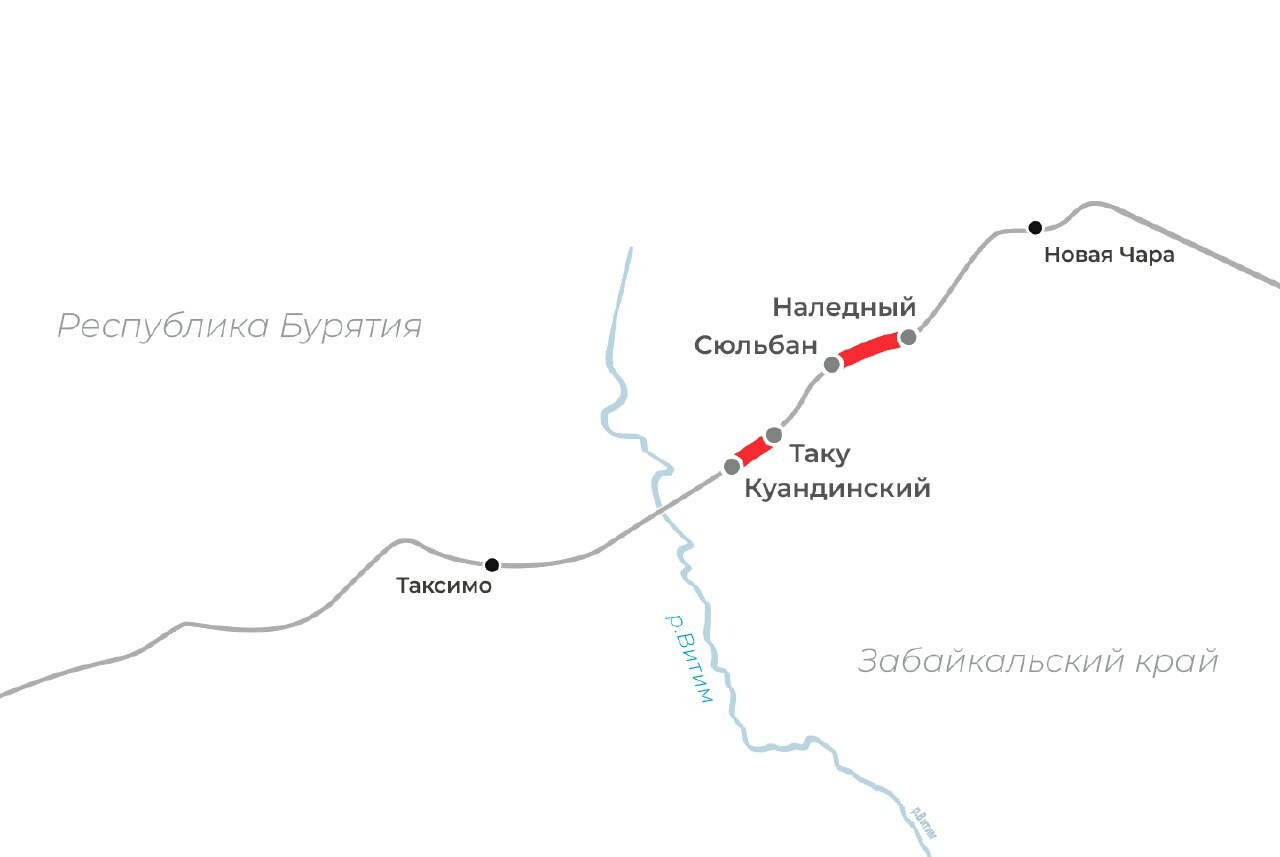 Магистраль на участке проходит по территории вечномерзлых грунтов. При модернизации участка объем земляных работ, в том числе с применением охлаждающей наброски для сохранения вечной мерзлоты в основании насыпи, составил почти 115 тыс. куб. м. Было построено 12,2 км нового пути, смонтировано 5 стрелочных переводов, проложено более 44 км кабеля системы сигнализации, централизации и блокировки.