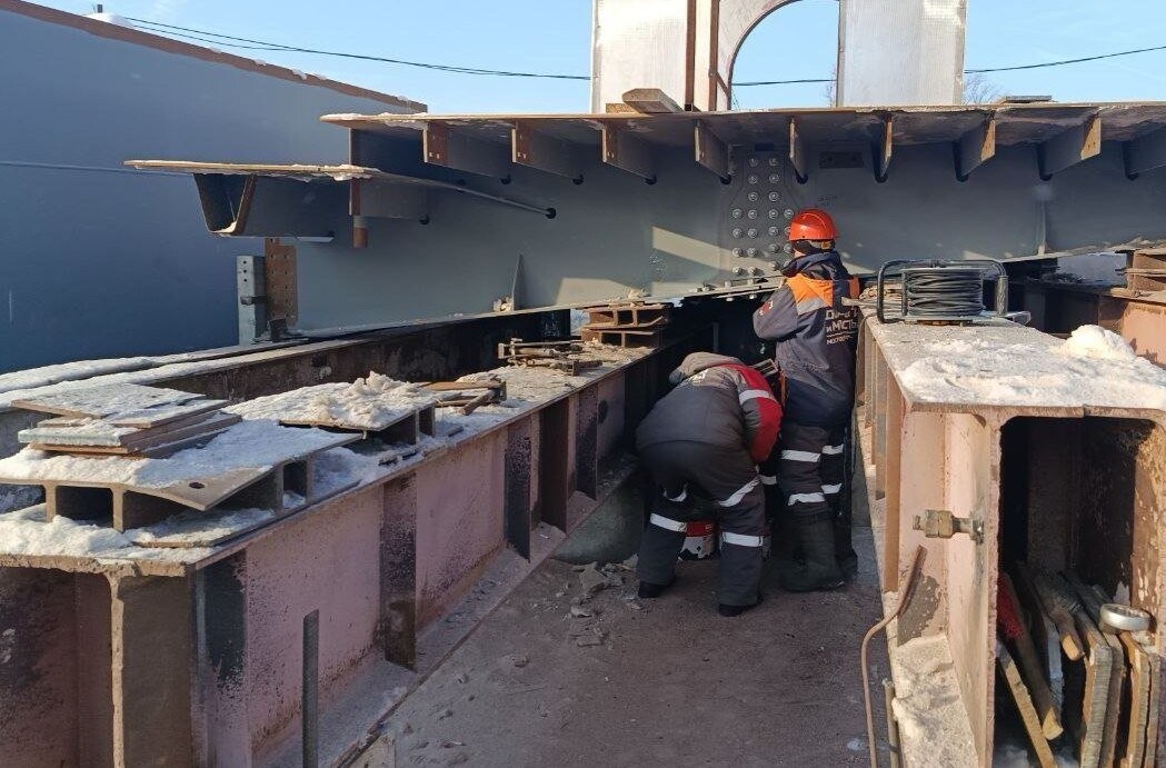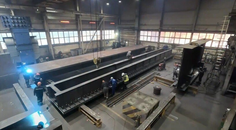 © t.me Специалисты Нацпроектстроя, возводящие мост через канал имени Москвы в Дмитрове, приступили к укрупнению металлоконструкций будущего сооружения. Привезенные с завода детали, ограниченные размерами по условиям транспортировки, собираются в более габаритные и массивные конструкции, удобные для монтажа.Работы выполняет филиал «ДиМ» Мостоотряд-90. Сборка конструкций консольных плит (массой до 13 т) и элементов главных балок (до 32 т) ведется с помощью сварных и резьбовых соединений на стройплощадке. Специалисты используют автоматическую сварку. После укрупнения начнется монтаж секций пролетного строения, его общая масса составит 1,4 тысячи тонн.Также мостовики занимаются переносом инженерных коммуникаций. Сети связи и линии электропередачи уже перенесены. Устройство свай на правом берегу канала завершено. Строительство мостового перехода через канал имени Москвы будет проведено в два этапа и завершится в 2029 году. Четыре полосы движения (по две в обе стороны) позволят водителям сэкономить до 40 минут. Новый переход заменит мост сороковых годов XX века, который сейчас находится в аварийном состоянии. Также в проекте строительство нового путепровода через железнодорожные пути Савеловского направления железной дороги.