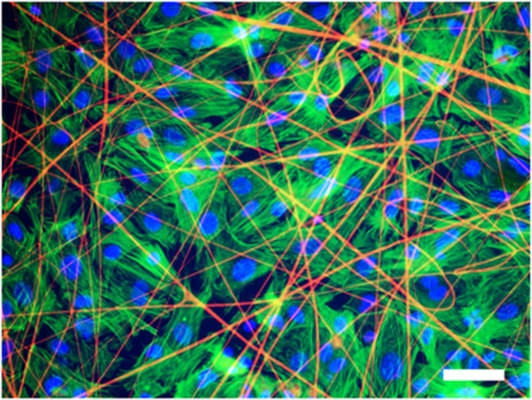 Фото: Выращенные на матрице клетки сердечной ткани, помеченные флюоресцентным красителем. © Alexander Teplenin et al. / PLOS ONE