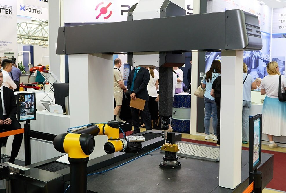 Специалисты M.Solutions представили инновационную универсальную ячейку для координатных измерений на базе промышленного робота «Эйдос Робототехника» (член Национальной ассоциации участников рынка робототехники). Этот комплекс позволяет полностью автоматизировать технический контроль выпускаемых изделий. Интеграция измерительной машины непосредственно в роботизированную линию обеспечивает непрерывный мониторинг точности производства без участия оператора.