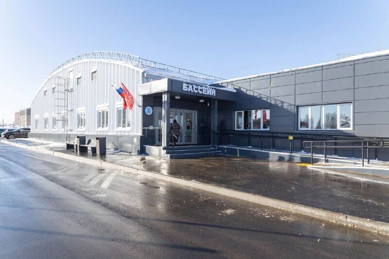 © myslo.ru Его построили по просьбе жителей микрорайона. Здание бассейна общей площадью 5322 кв. м возвели всего за восемь месяцев. Теперь местным жителям не придется далеко ездить, чтобы заниматься плаванием. Всего в чаше бассейна шесть плавательных дорожек по 25 метров.