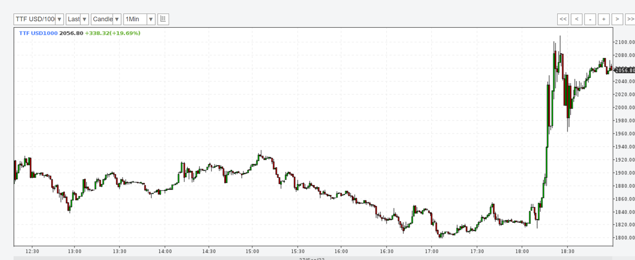 26 сентября резко упало давление на обеих нитках газопровода «Северный поток», а на так и не введенном в эксплуатацию «Северном потоке — 2» произошла авария, затем давление в одной из двух ниток газопровода рядом с датским островом Борнхольм резко упало (с 300 до 7 бар).